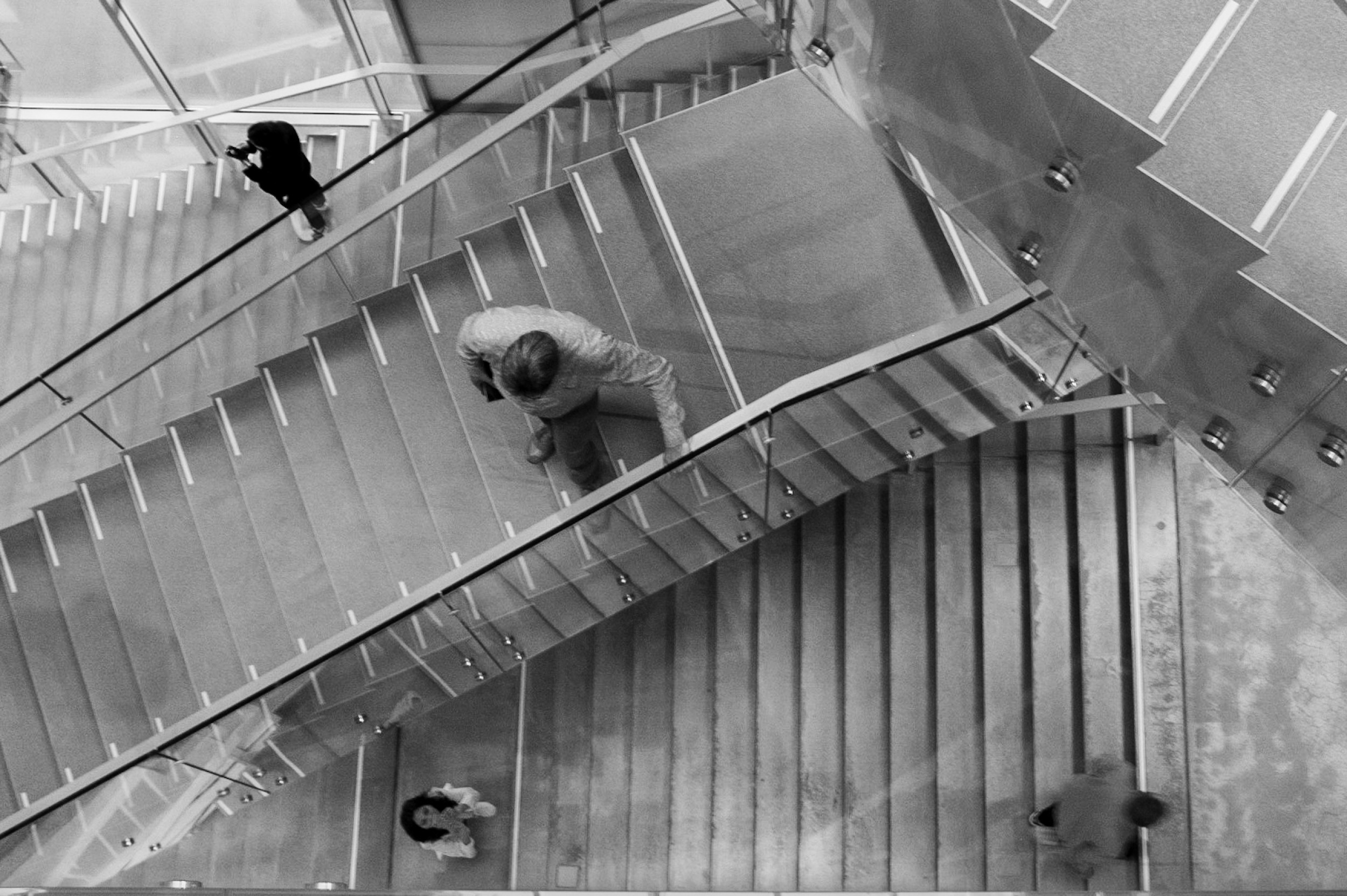 When in the right place, you can also observe and make the focal point of your photograph, not a particular element but the relation between the different elements in the frame. The photograph below was taken from a high point of view inside the Depot Boijmans Van Beuningen in Rotterdam.